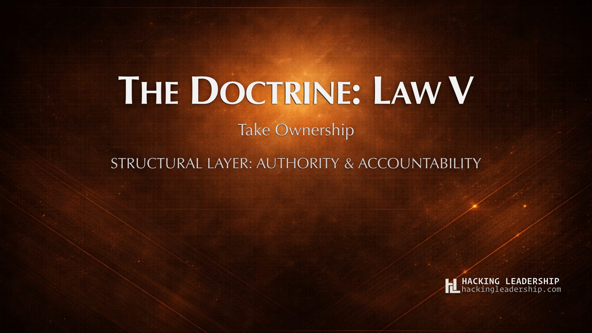 Ownership, as the Law defines it, is structural responsibility for results. Not participation in the work. Not visibility into the outcome. Responsibility for it — meaning the tradeoffs are yours to call, the escalation paths run through you, and when the outcome is named, your name is attached to it.